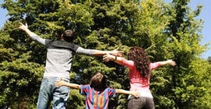 Young happy family in nature with opened arms looking up and bre Leave a Comment / By Admin / June 1, 2018